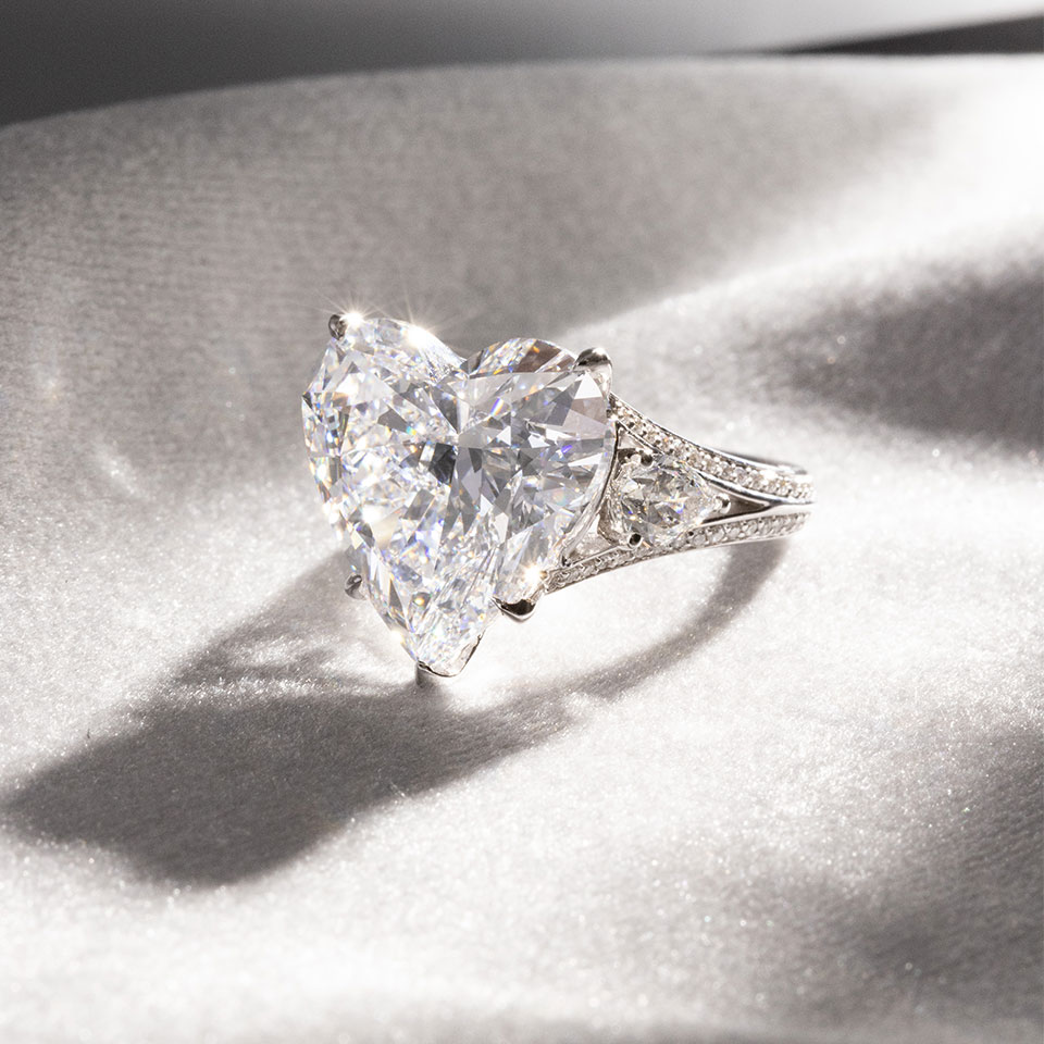 The marvellous 10 carat, heart-shaped, D colour, Type IIA and internally flawless diamond ring is a promise of love. Our breath taking diamond ring archived perfection in Pour La Vie and considered the best quality diamond due to its high clarity, rarity and durability, make it an excellent choice for engagement ring and investment purpose.